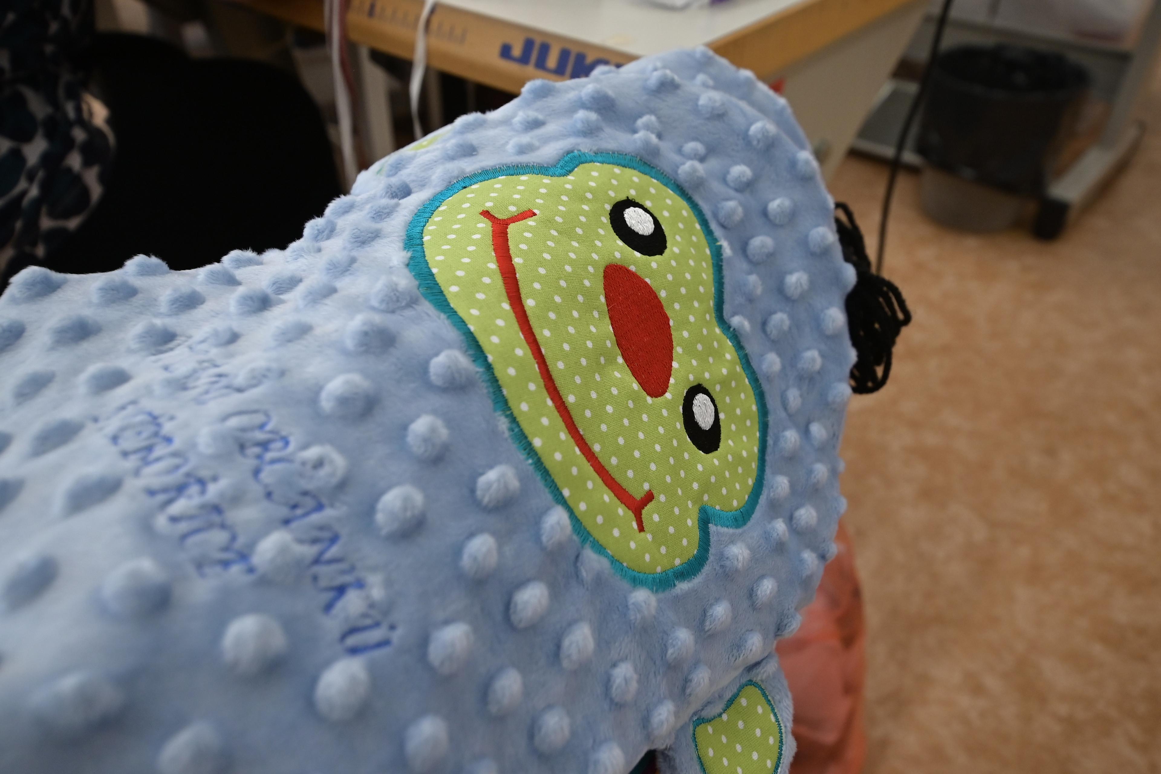 Tato spolupráce znamenitě funguje také při tvorbě dekoračních polštářů a polštářů pro děti (vizte e-shop), kde tvoříme výšivku na rozpracovaný kus, poté švadleny polštáře došívají.